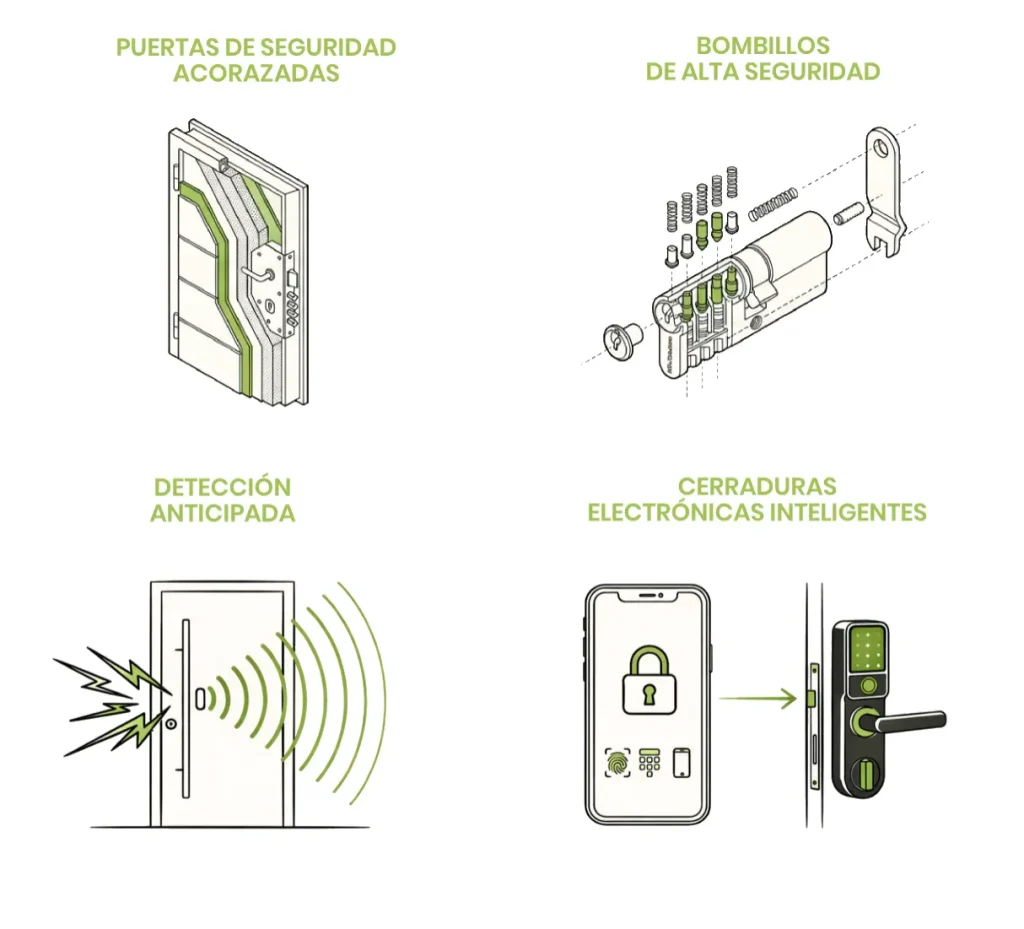 ✅ Puertas de seguridad acorazadas con estructura de acero y certificaciones europeas contra la efracción.